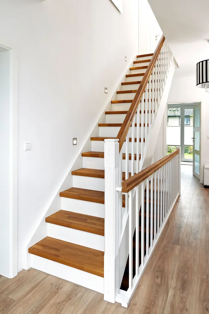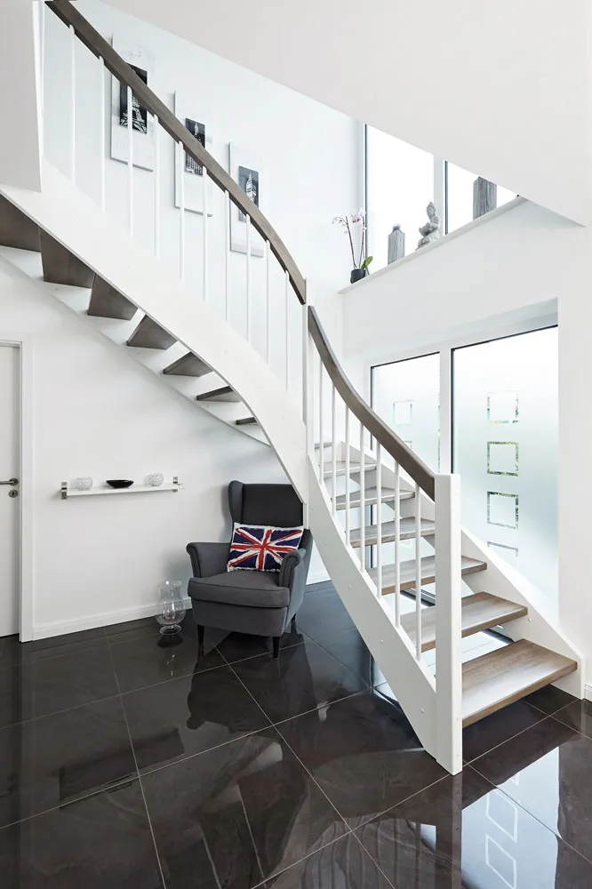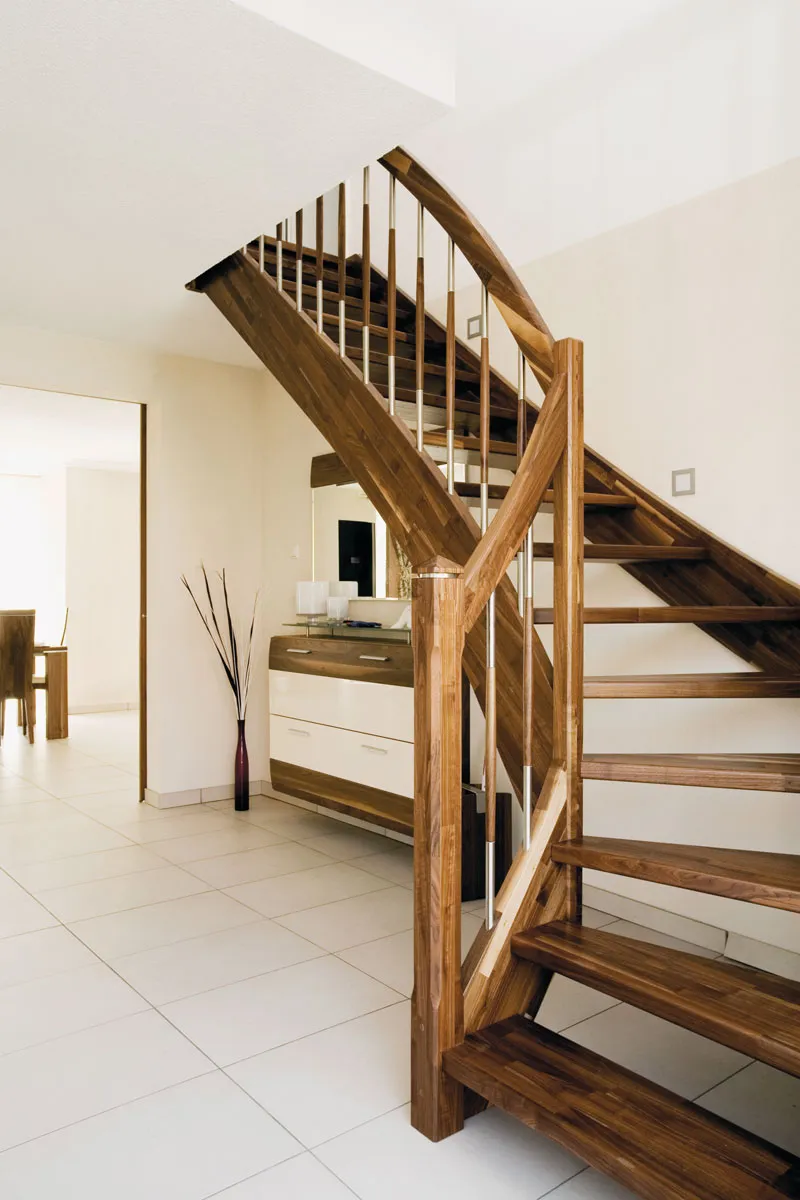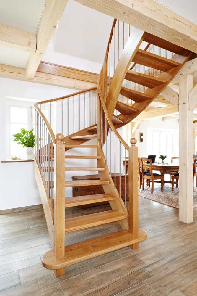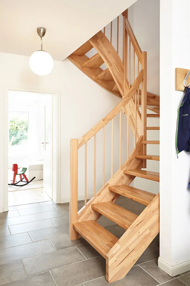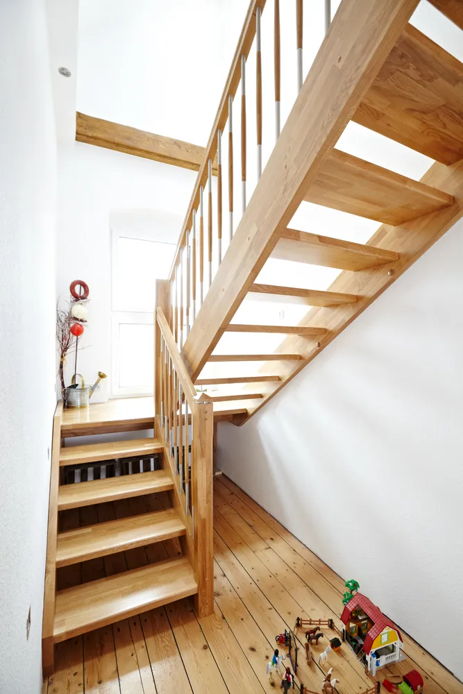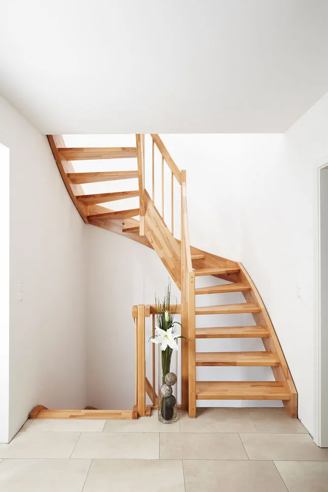 Wie bei allen Treppenarten von Sonnemann haben Sie die Möglichkeit, Ihre Treppe ganz nach Ihrem eigenen Geschmack zu gestalten und durch die Wahl der Holzart, diverser Oberflächenveredelungen, Pfosten, Stäbe, Handläufe und gegebenenfalls Farbe Ihrem Wohnraum perfekt anzupassen.